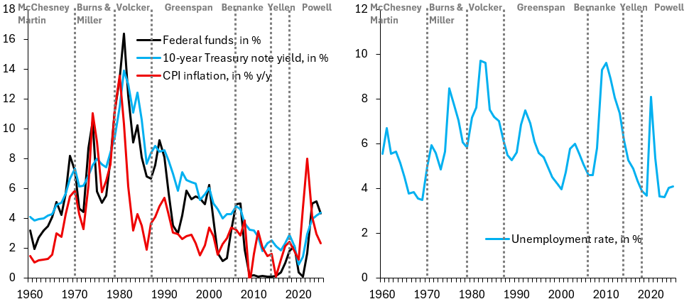 Indeed, it’s not that long ago that the Fed was struggling to regain monetary policy credibility after a series of oil shocks pushed up inflation in the 1970s. To bring inflation back under control and restore the Fed’s credibility, then Chair Paul Volcker allowed real interest rates - the difference between nominal rates and inflation - to rise to punitive levels (left chart above), pushing the unemployment rate up to its all-time high in the post-war period (right chart above). This very costly disinflation episode set the stage for the subsequent two decades of low and stable inflation, which ended with the COVID pandemic.